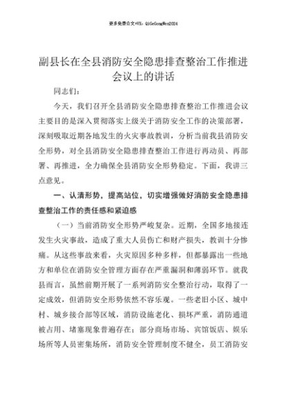 【七哥公文】2025年:【七哥公文】副县长在全县消防安全隐患排查整治工作推进会议上的讲话+更多免费公文+VX:QiGeGongWen2024+更多免费公文+VX:QiGeGongWen2024
