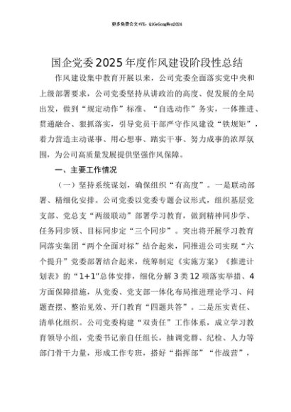 【七哥公文】2025年:【七哥公文】国企党委2025年度作风建设阶段性总结+更多免费公文+VX:QiGeGongWen2024+更多免费公文+VX:QiGeGongWen2024