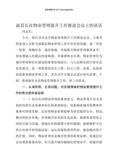 【七哥公文】2025年:【七哥公文】副县长在物业管理提升工作推进会议上的讲话+更多免费公文+VX:QiGeGongWen2024+更多免费公文+VX:QiGeGongWen2024