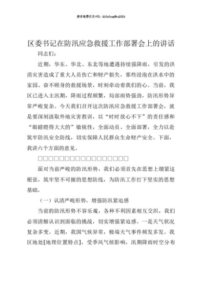 【七哥公文】2025年:【七哥公文】区委书记在防汛应急救援工作部署会上的讲话+更多免费公文+VX:QiGeGongWen2024+更多免费公文+VX:QiGeGongWen2024