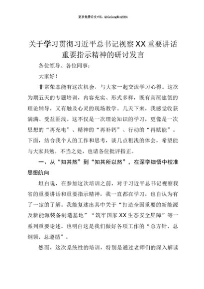 【七哥公文】2025年:【七哥公文】关于学习贯彻习近平总书记视察XX重要讲话重要指示精神的研讨发言+更多免费公文+VX:QiGeGongWen2024+更多免费公文+VX:QiGeGongWen2024