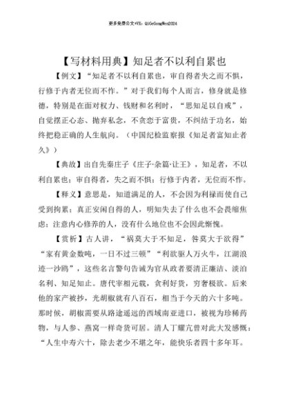 【七哥公文】2025年:【七哥公文】【写材料用典】知足者不以利自累也+更多免费公文+VX:QiGeGongWen2024+更多免费公文+VX:QiGeGongWen2024