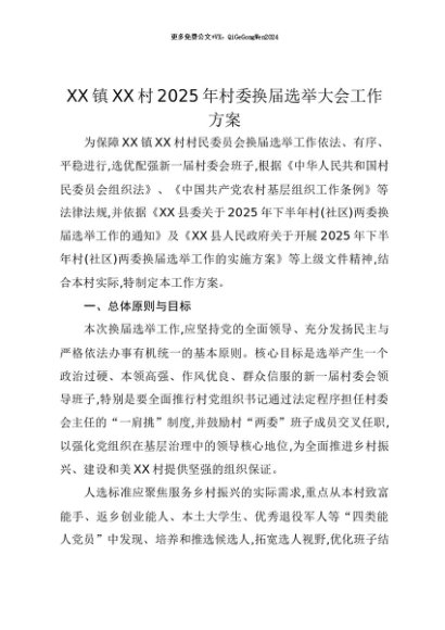 【七哥公文】2025年:【七哥公文】XX镇XX村2025年村委换届选举大会工作方案+更多免费公文+VX:QiGeGongWen2024+更多免费公文+VX:QiGeGongWen2024