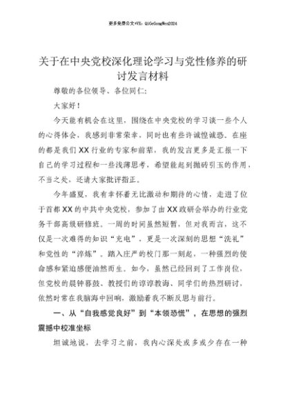 【七哥公文】2025年:【七哥公文】关于在中央党校深化理论学习与党性修养的研讨发言材料+更多免费公文+VX:QiGeGongWen2024+更多免费公文+VX:QiGeGongWen2024