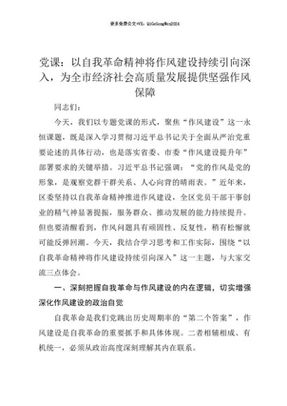 【七哥公文】2025年:【七哥公文】党课讲稿:以自我革命精神将作风建设持续引向深入,为全市经济社会高质量发展提供坚强作风保障+更多免费公文+VX:QiGeGongWen2024+更多免费公文+VX:QiGeGongWen2024