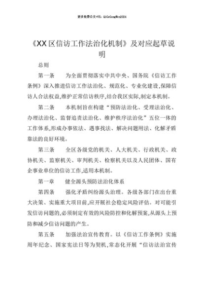 【七哥公文】2025年:【七哥公文】《XX区信访工作法治化机制》及对应起草说明+更多免费公文+VX:QiGeGongWen2024+更多免费公文+VX:QiGeGongWen2024