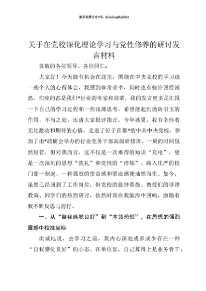 【七哥公文】2025年:【七哥公文】关于在党校深化理论学习与党性修养的研讨发言材料+更多免费公文+VX:QiGeGongWen2024+更多免费公文+VX:QiGeGongWen2024