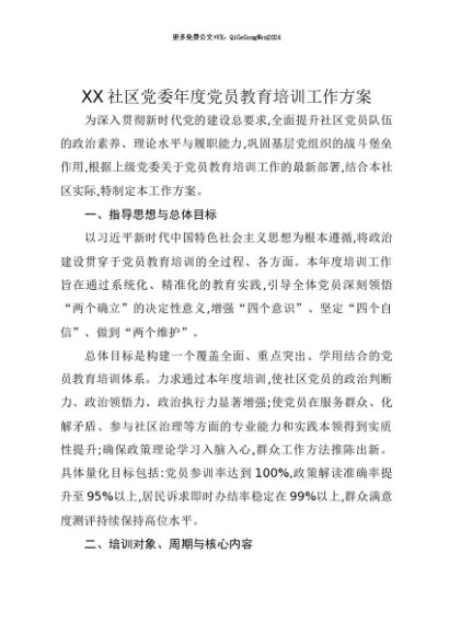 【七哥公文】2025年:【七哥公文】XX社区党委年度党员教育培训工作方案+更多免费公文+VX:QiGeGongWen2024+更多免费公文+VX:QiGeGongWen2024