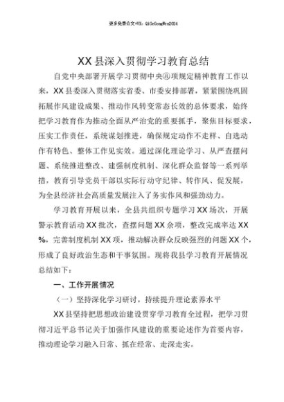 【七哥公文】2025年:【七哥公文】XX县深入贯彻中央八项规定精神学习教育总结+更多免费公文+VX:QiGeGongWen2024+更多免费公文+VX:QiGeGongWen2024