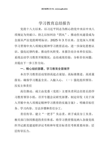 【七哥公文】2025年:【七哥公文】XX单位贯彻中央八项规定精神学习教育总结报告+更多免费公文+VX:QiGeGongWen2024+更多免费公文+VX:QiGeGongWen2024