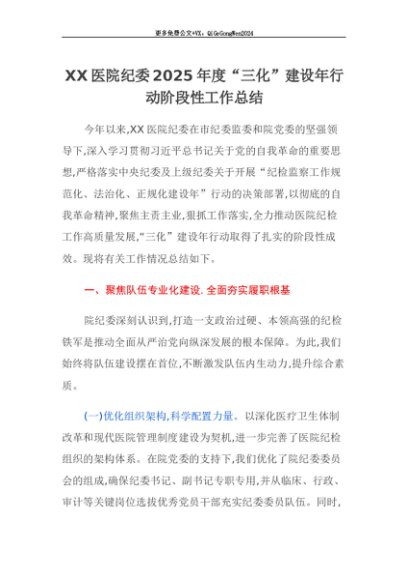 【七哥公文】2025年:【七哥公文】XX医院纪委2025年度“三化”建设年行动阶段性工作总结+更多免费公文+VX:QiGeGongWen2024+更多免费公文+VX:QiGeGongWen2024