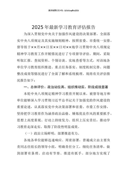 【七哥公文】2025年:【七哥公文】2025年最新贯彻中央八项规定精神学习教育评估报告+更多免费公文+VX:QiGeGongWen2024+更多免费公文+VX:QiGeGongWen2024