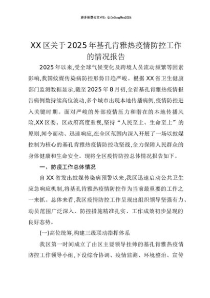 【七哥公文】2025年:【七哥公文】XX区关于2025年基孔肯雅热疫情防控工作的情况报告+更多免费公文+VX:QiGeGongWen2024+更多免费公文+VX:QiGeGongWen2024