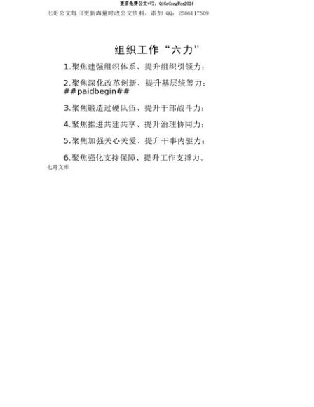 【七哥公文】2025年:【七哥公文】组织工作“六力”+更多免费公文+VX:QiGeGongWen2024+更多免费公文+VX:QiGeGongWen2024
