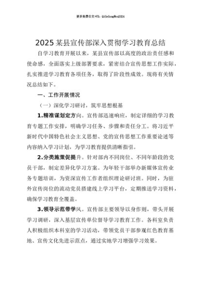 【七哥公文】2025年:【七哥公文】2025某县宣传部深入贯彻中央八项规定精神学习教育总结+更多免费公文+VX:QiGeGongWen2024+更多免费公文+VX:QiGeGongWen2024