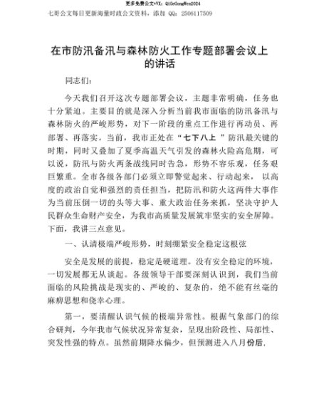 【七哥公文】2025年:【七哥公文】在市防汛备汛与森林防火工作专题部署会议上的讲话+更多免费公文+VX:QiGeGongWen2024+更多免费公文+VX:QiGeGongWen2024