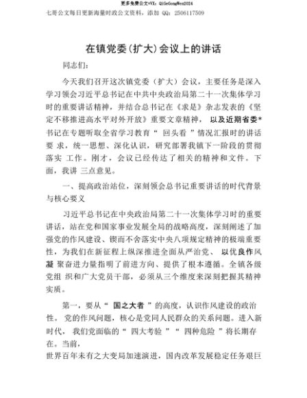 【七哥公文】2025年:【七哥公文】在镇X委(扩大)会议上的讲话+更多免费公文+VX:QiGeGongWen2024+更多免费公文+VX:QiGeGongWen2024