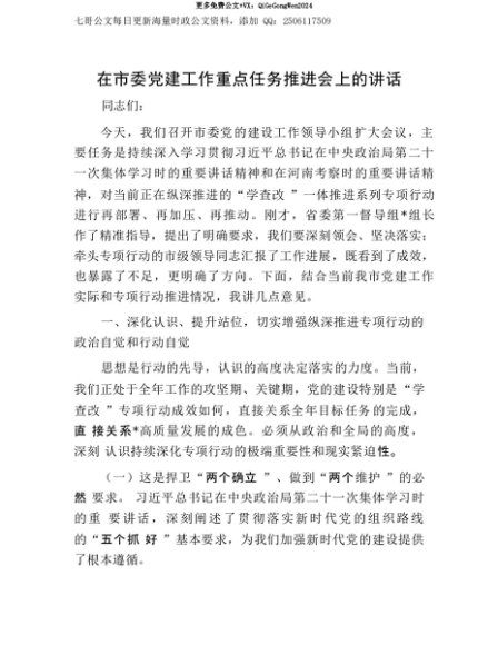 【七哥公文】2025年:【七哥公文】在市委X建工作重点任务推进会上的讲话+更多免费公文+VX:QiGeGongWen2024+更多免费公文+VX:QiGeGongWen2024
