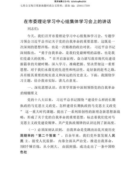 【七哥公文】2025年:【七哥公文】在市委理论学习中心组集体学习会上的讲话+更多免费公文+VX:QiGeGongWen2024+更多免费公文+VX:QiGeGongWen2024