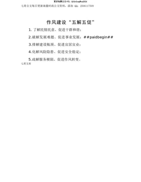 【七哥公文】2025年:【七哥公文】作风建设“五解五促”+更多免费公文+VX:QiGeGongWen2024+更多免费公文+VX:QiGeGongWen2024