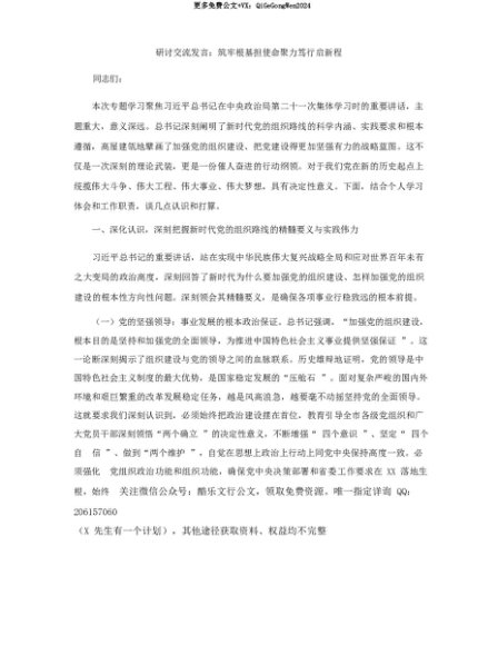 【七哥公文】2025年:【七哥公文】研讨交流发言:筑牢根基担使命 聚力笃行启新程+更多免费公文+VX:QiGeGongWen2024+更多免费公文+VX:QiGeGongWen2024