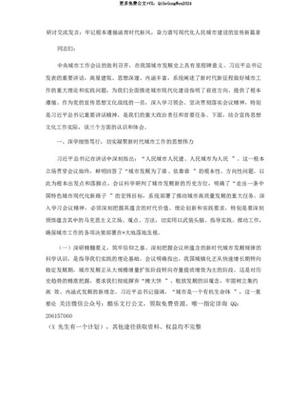 【七哥公文】2025年:【七哥公文】研讨交流发言:牢记根本遵循涵育时代新风,奋力谱写现代化人民城市建设的宣传新篇章+更多免费公文+VX:QiGeGongWen2024+更多免费公文+VX:QiGeGongWen2024
