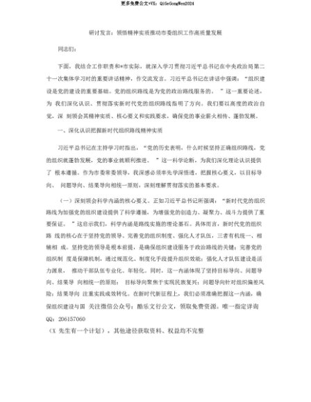 【七哥公文】2025年:【七哥公文】研讨发言:领悟精神实质 推动市委组织工作高质量发展+更多免费公文+VX:QiGeGongWen2024+更多免费公文+VX:QiGeGongWen2024