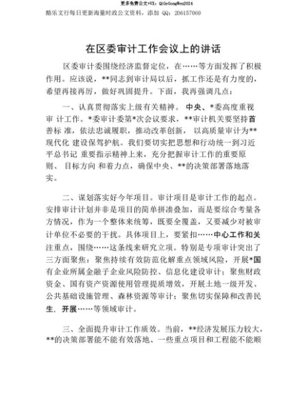 【七哥公文】2025年:【七哥公文】在区委审计工作会议上的讲话+更多免费公文+VX:QiGeGongWen2024+更多免费公文+VX:QiGeGongWen2024