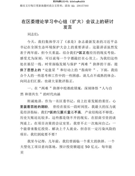 【七哥公文】2025年:【七哥公文】在区委理论学习中心组(扩大)会议上的研讨发言+更多免费公文+VX:QiGeGongWen2024+更多免费公文+VX:QiGeGongWen2024