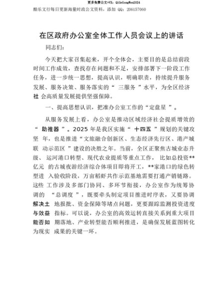 【七哥公文】2025年:【七哥公文】在区政府办公室全体工作人员会议上的讲话+更多免费公文+VX:QiGeGongWen2024+更多免费公文+VX:QiGeGongWen2024