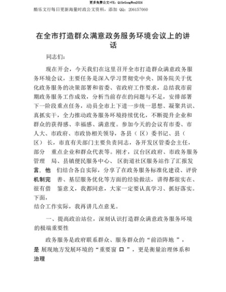 【七哥公文】2025年:【七哥公文】在全市打造群众满意政务服务环境会议上的讲话+更多免费公文+VX:QiGeGongWen2024+更多免费公文+VX:QiGeGongWen2024