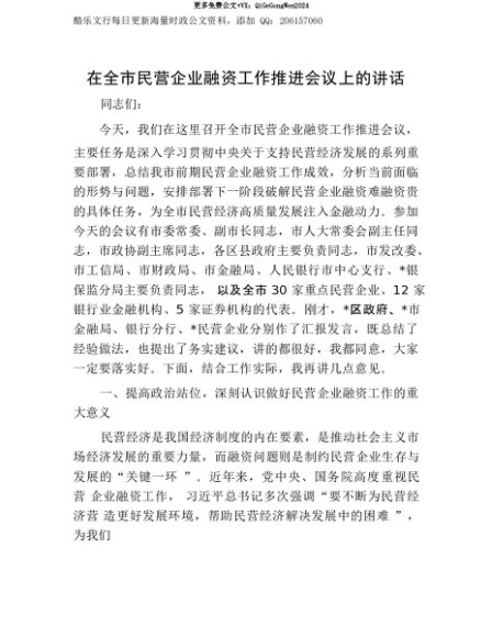 【七哥公文】2025年:【七哥公文】在全市民营企业融资工作推进会议上的讲话+更多免费公文+VX:QiGeGongWen2024+更多免费公文+VX:QiGeGongWen2024