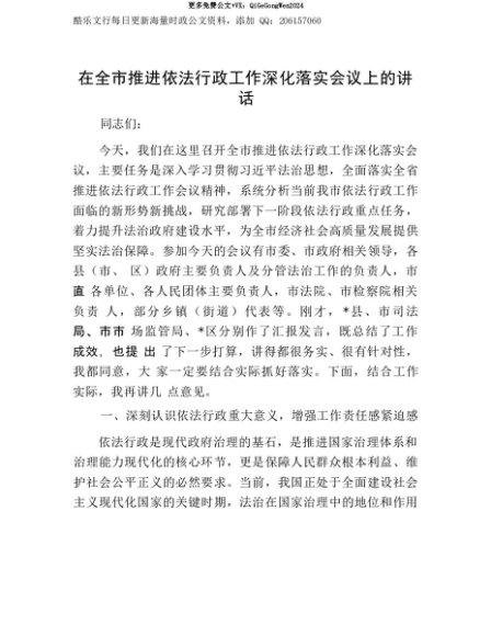【七哥公文】2025年:【七哥公文】在全市推进依法行政工作深化落实会议上的讲话+更多免费公文+VX:QiGeGongWen2024+更多免费公文+VX:QiGeGongWen2024