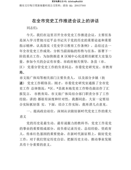 【七哥公文】2025年:【七哥公文】在全市X史工作推进会议上的讲话+更多免费公文+VX:QiGeGongWen2024+更多免费公文+VX:QiGeGongWen2024