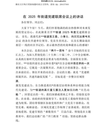 【七哥公文】2025年:【七哥公文】在2025年街道X建联席会议上的讲话+更多免费公文+VX:QiGeGongWen2024+更多免费公文+VX:QiGeGongWen2024