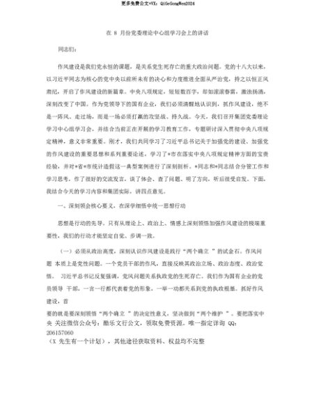 【七哥公文】2025年:【七哥公文】在8月份X委理论中心组学习会上的讲话+更多免费公文+VX:QiGeGongWen2024+更多免费公文+VX:QiGeGongWen2024