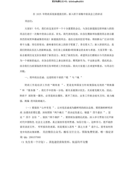 【七哥公文】2025年:【七哥公文】在2025年财政系统新提拔任职、新入职干部集中座谈会上的讲话+更多免费公文+VX:QiGeGongWen2024+更多免费公文+VX:QiGeGongWen2024
