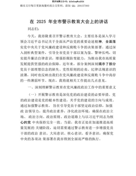 【七哥公文】2025年:【七哥公文】在2025年全市警示教育大会上的讲话+更多免费公文+VX:QiGeGongWen2024+更多免费公文+VX:QiGeGongWen2024