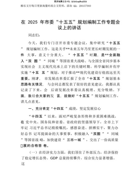 【七哥公文】2025年:【七哥公文】在2025年市委“十五五”规划编制工作专题会议上的讲话+更多免费公文+VX:QiGeGongWen2024+更多免费公文+VX:QiGeGongWen2024