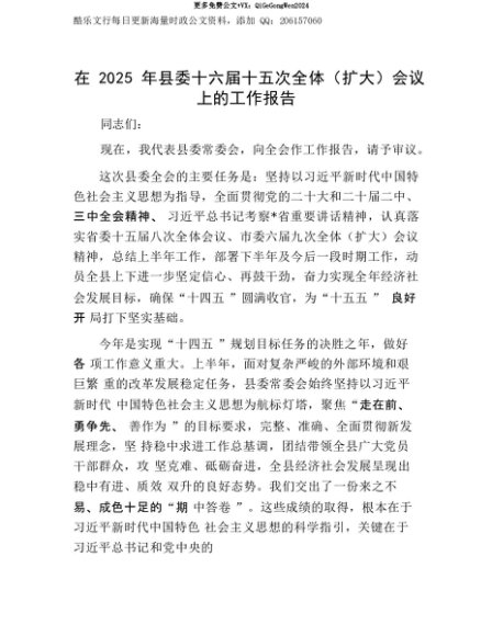 【七哥公文】2025年:【七哥公文】在2025年县委十六届十五次全体(扩大)会议上的工作报告+更多免费公文+VX:QiGeGongWen2024+更多免费公文+VX:QiGeGongWen2024
