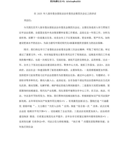 【七哥公文】2025年:【七哥公文】在2025年八届市委全面依法治市委员会第四次会议上的讲话+更多免费公文+VX:QiGeGongWen2024+更多免费公文+VX:QiGeGongWen2024