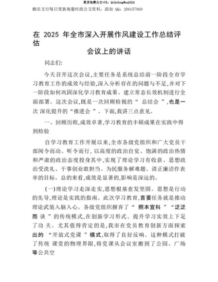 【七哥公文】2025年:【七哥公文】在2025年全市深入开展作风建设工作总结评估会议上的讲话+更多免费公文+VX:QiGeGongWen2024+更多免费公文+VX:QiGeGongWen2024