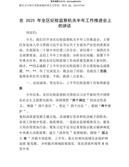 【七哥公文】2025年:【七哥公文】在2025年全区纪检监察机关半年工作推进会上的讲话+更多免费公文+VX:QiGeGongWen2024+更多免费公文+VX:QiGeGongWen2024