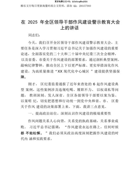 【七哥公文】2025年:【七哥公文】在2025年全区领导干部作风建设警示教育大会上的讲话+更多免费公文+VX:QiGeGongWen2024+更多免费公文+VX:QiGeGongWen2024