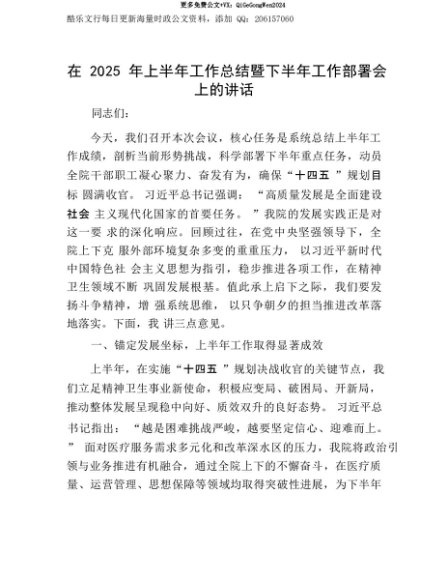 【七哥公文】2025年:【七哥公文】在2025年上半年工作总结暨下半年工作部署会上的讲话+更多免费公文+VX:QiGeGongWen2024+更多免费公文+VX:QiGeGongWen2024