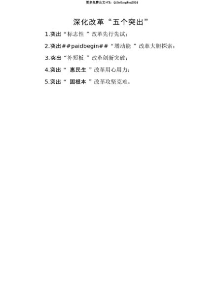 【七哥公文】2025年:【七哥公文】深化改革“五个突出”+更多免费公文+VX:QiGeGongWen2024+更多免费公文+VX:QiGeGongWen2024