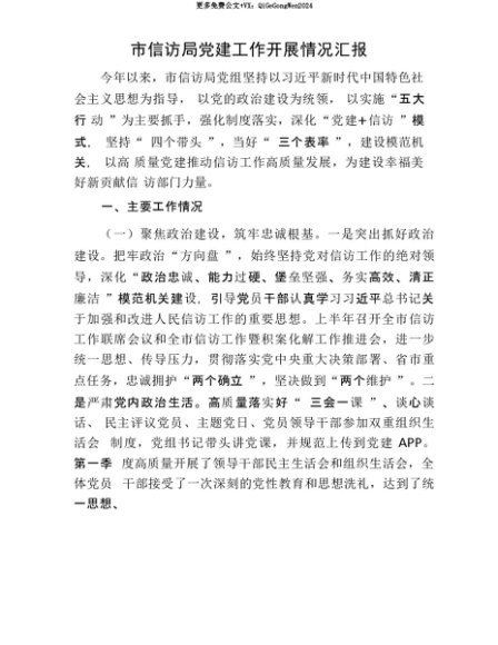 【七哥公文】2025年:【七哥公文】市信访局X建工作开展情况汇报+更多免费公文+VX:QiGeGongWen2024+更多免费公文+VX:QiGeGongWen2024
