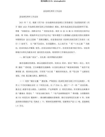 【七哥公文】2025年:【七哥公文】县选调生两年工作总结+更多免费公文+VX:QiGeGongWen2024+更多免费公文+VX:QiGeGongWen2024