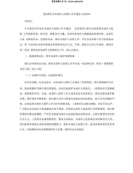 【七哥公文】2025年:【七哥公文】县检察长在未成年人检察工作专题会上的讲话+更多免费公文+VX:QiGeGongWen2024+更多免费公文+VX:QiGeGongWen2024