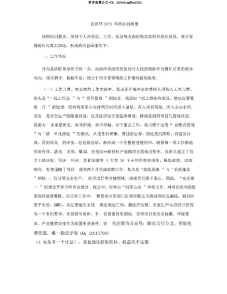 【七哥公文】2025年:【七哥公文】县领导2025年ZZ自画像+更多免费公文+VX:QiGeGongWen2024+更多免费公文+VX:QiGeGongWen2024
